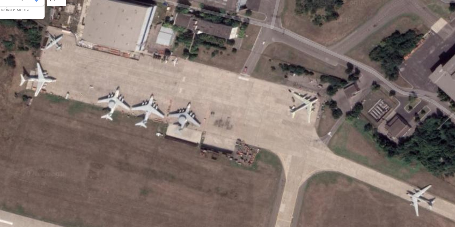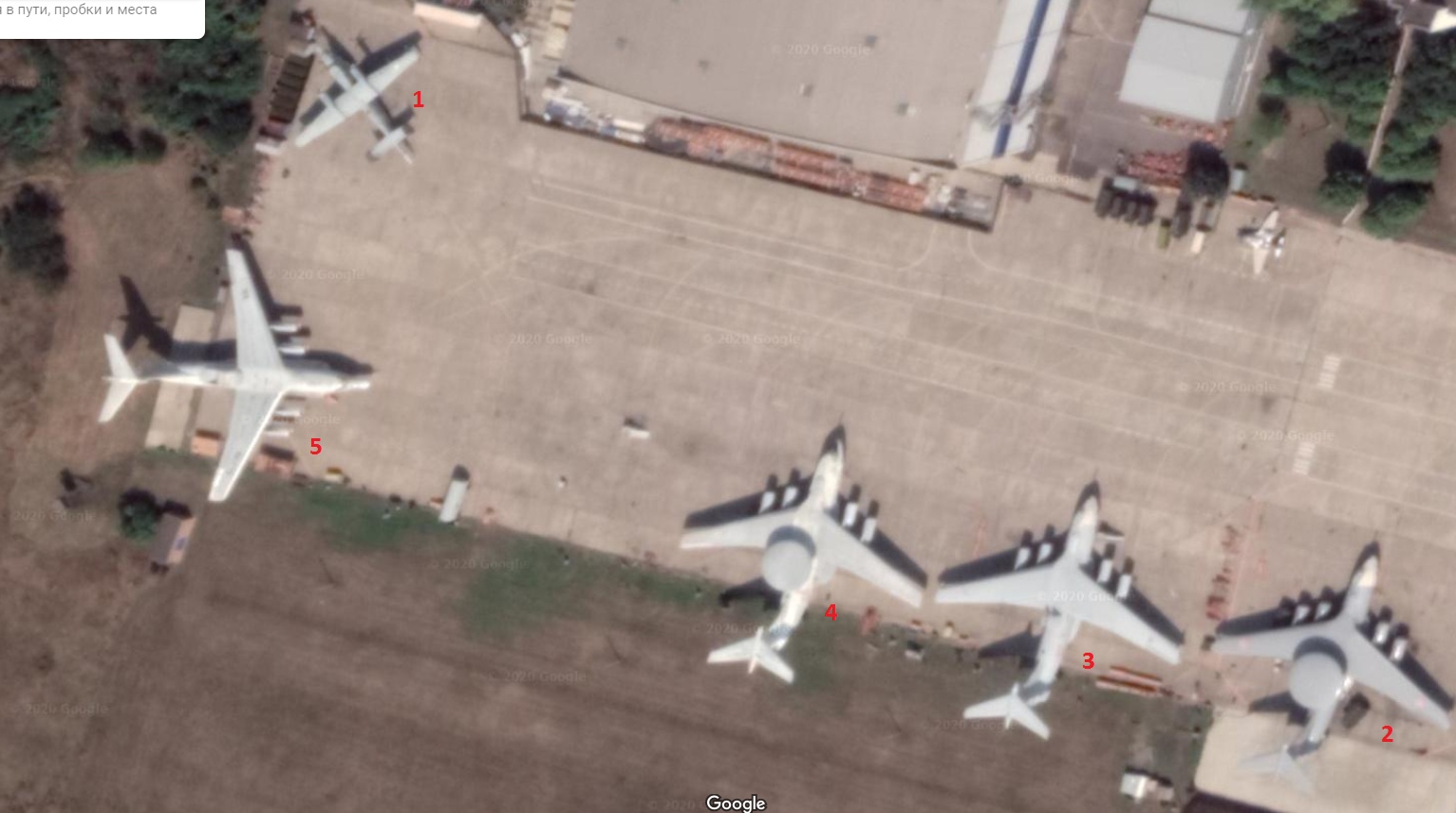 5. Собственно Ил-80. Судя по "горбу". Но с снятыми двигателями. Я бы сказал что это самолёт отслуживший своё. Таким образом воздушных КП у нас три.