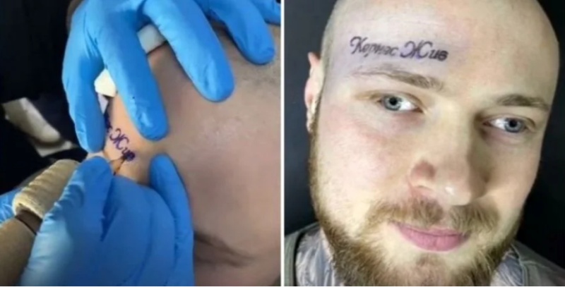 Харьковский фитнес тренер Евгений Ивашко в память об ушедшем из жизни мэре города Геннадии Кернесе набил на лбу татуировку «Кернес жив».