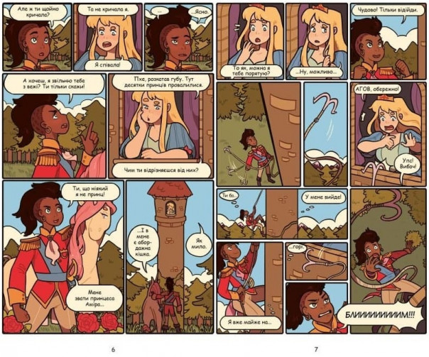 Детям от 5 лет предлагается ознакомиться с историей о двух девушках. Одна из них — белокурая принцесса, заточённая в башне. Другая — чернокожая её спасительница. История заканчивается их свадьбой.