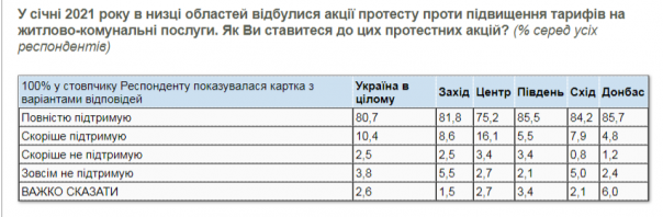 Более 90% граждан Украины поддерживают протесты против повышения тарифов на газ, которые проходили по всей стране в течение января.