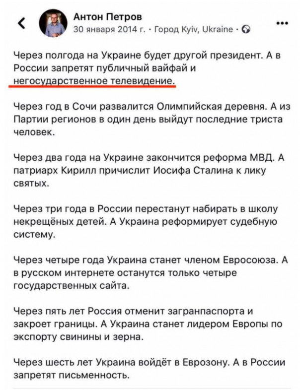 Эти оппозиционные каналы были одни-единственные, которые хоть какой-то проливали белый информационный свет на то, что происходит в Донбассе. Рассказывали, что на самом деле происходит в экономическо-хозяйственной деятельности страны. В какой эти недолугие соросята ввергают хаос, смерть, войну, раскол, нацизм, уничтожение собственной промышленности и отдаче за бесценок земель Украины. И многое другое страшное, что они приносят обществу.