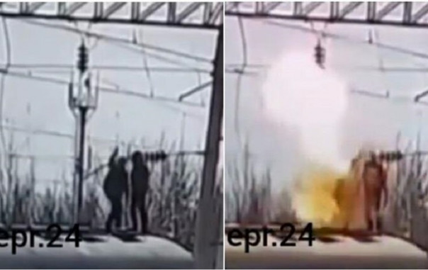 Загорелся и камнем вниз: парень на спор взялся за высоковольтный провод
