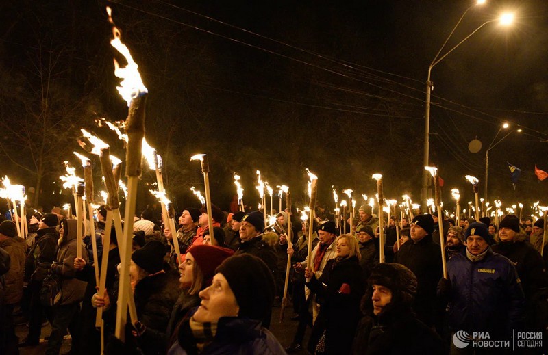 Участники факельного шествия националистов,
