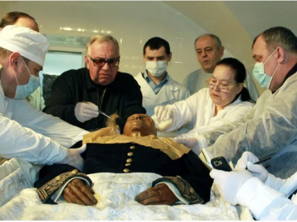 В 1945 г. специальная комиссия обследовала мумию и пришла к выводу, что та не подлежит восстановлению. И все же Московская лаборатория им. Ленина взялась за ребальзамацию. В течение 115 дней в подвале музея проводилось ребальзамирование, которое существенно замедлило распад тканей. Для мировой науки это был уникальный результат. С тех пор ребальзамацию проводят раз в 5-7 лет.