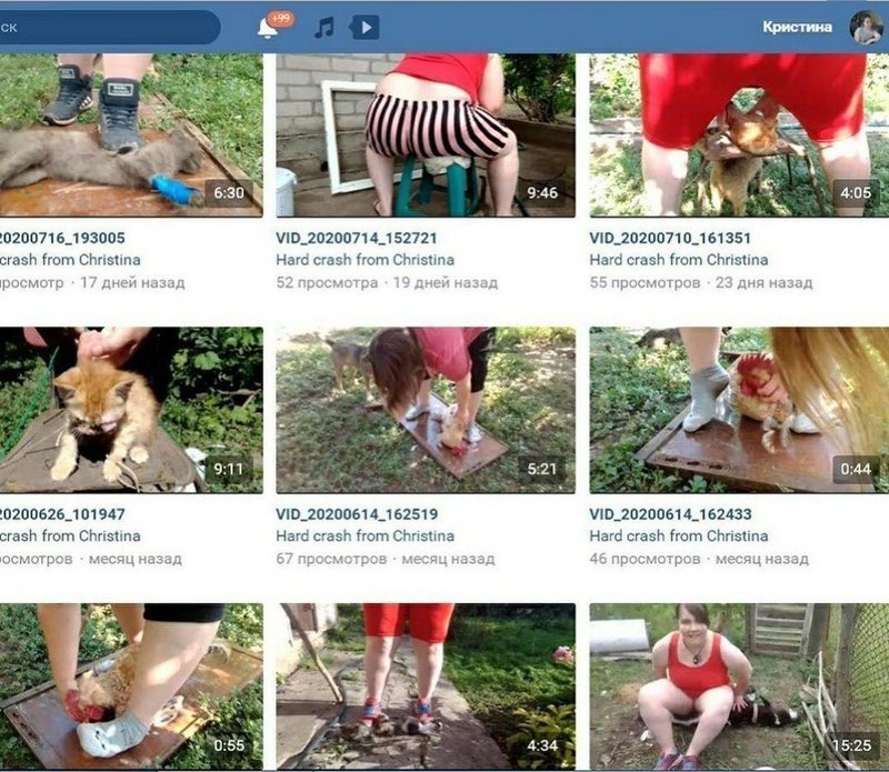 Прошлым летом в Запорожской области полиция разыскала и задержала 24-летнюю девушку, которая выкладывала в закрытых группах «ВКонтакте» видео, на которых жестоко убивала животных. Также она записывала видео эротического характера, в некоторых из них совмещала порнографию и живодёрство.