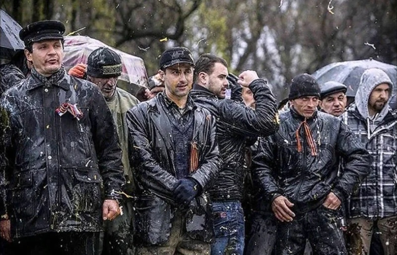 «Мужчины стоят, обсыпанные мукой, грязные, с зонтами в руках, и одна девушка среди них; да, там оставалась девушка. Прошу прощения, наверно, это прозвучит несколько пафосно, но если Бог действительно есть, то он в этот момент был там, среди этих немногих, которых окружала ненавидящая их толпа... Под градом угроз, петард, земли, яиц и прочего оружия днепропетровских фашистов (на „экзекуцию‟ запорожцев прибыли боевики олигарха Коломойского из Днепропетровска — авт.) ребята два с половиной часа продержали флаг (сложили его, как условие, что отпустят женщин, но не отдали) и не отдали ни одной георгиевской ленточки», — так в 2014 году описывала эти события украинский публицист Мирослава Бердник.