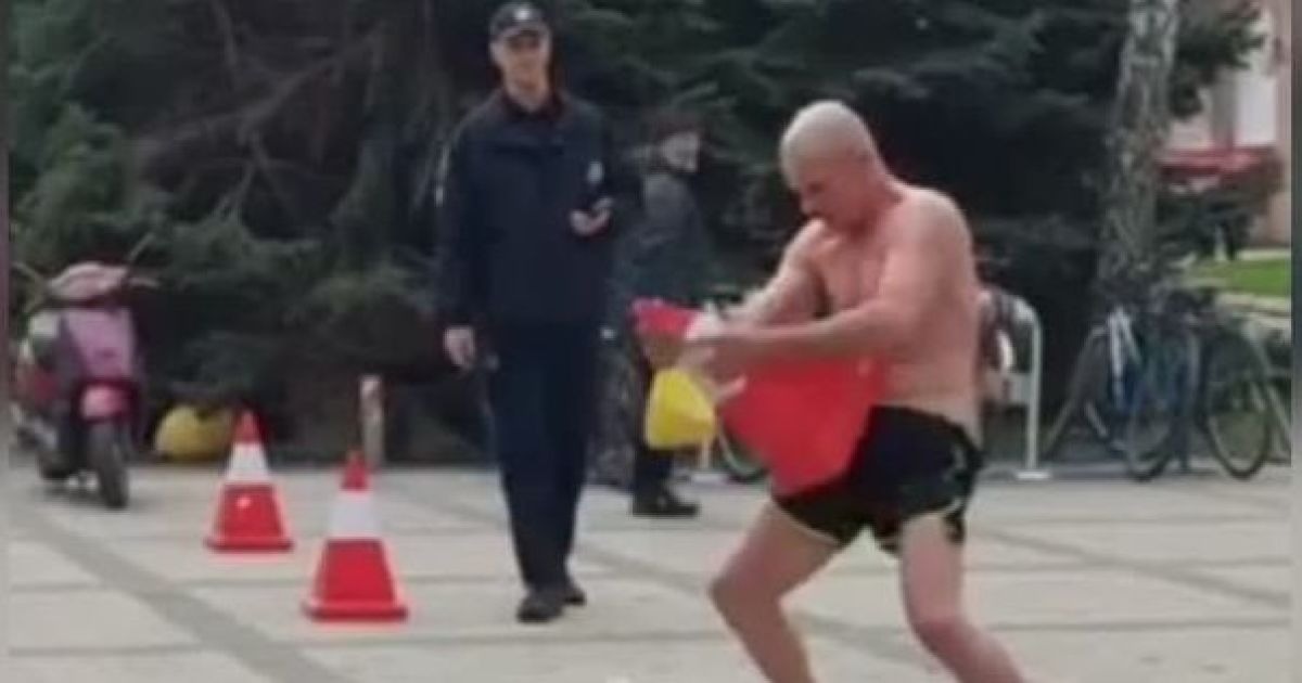 Прекратив укладку плитки, сообщает ТСН, фигурант разделся, начал бегать по кругу, имитировал половой акт с мусорным баком и дорожным конусом, кричал что-то непонятное и даже бросался на полицейского, требуя, чтобы тот наконец на него отреагировал. Однако полицейский не торопился и ждал развития событий, наблюдая за странным персонажем.