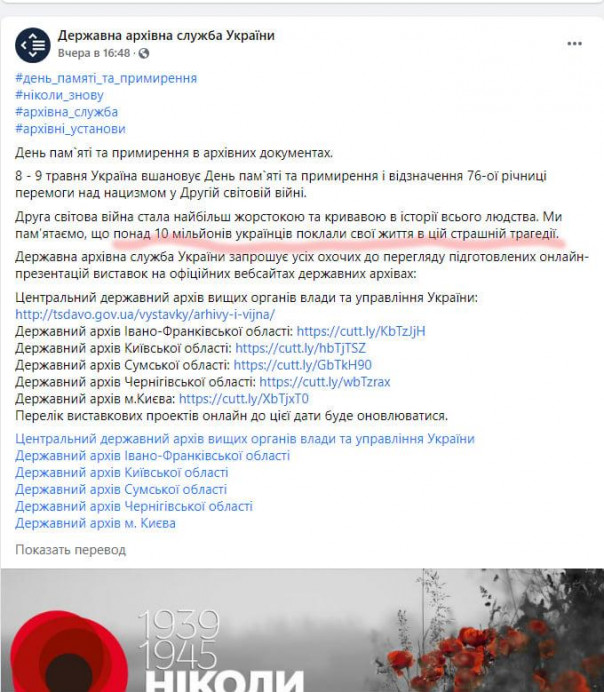 В день как бы памяти всегда происходит соревнование в беспамятстве: кто больше украинцев похоронит. Название Великой Отечественной войны запрещено, советские полководцы заклеймлены, речевки про утопших в Днепре отскакивают от зубов, праздник системно уничтожается - под предлогом того, что нужно скорбеть о погибших, конечно. Но сколько же погибло - так никто и не знает.