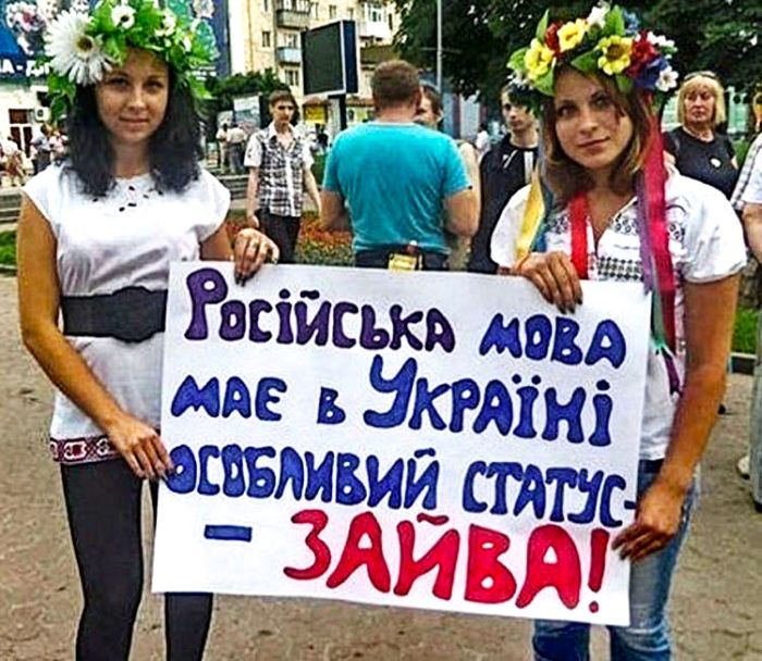 Вдумайтесь, кто такие «русскоязычные украинцы»? По понятиям украинства они и не украинцы вовсе, а самые что ни на есть русские. Украинство предполагает исключительно «одну мову» для «одной нации», а посему никак не может считаться украинцем носитель русского языка – ни при каких обстоятельствах!