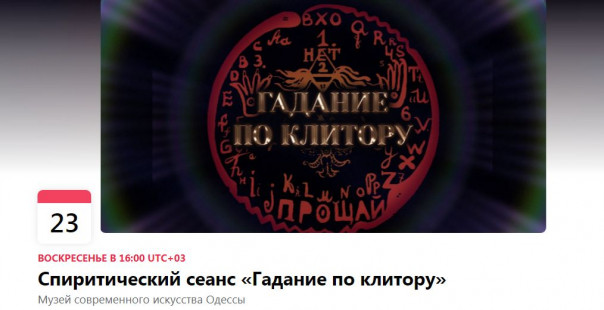 Страница специфического мероприятия под названием "Спиритический сеанс "Гадание по клитору" создана в Фейсбуке.