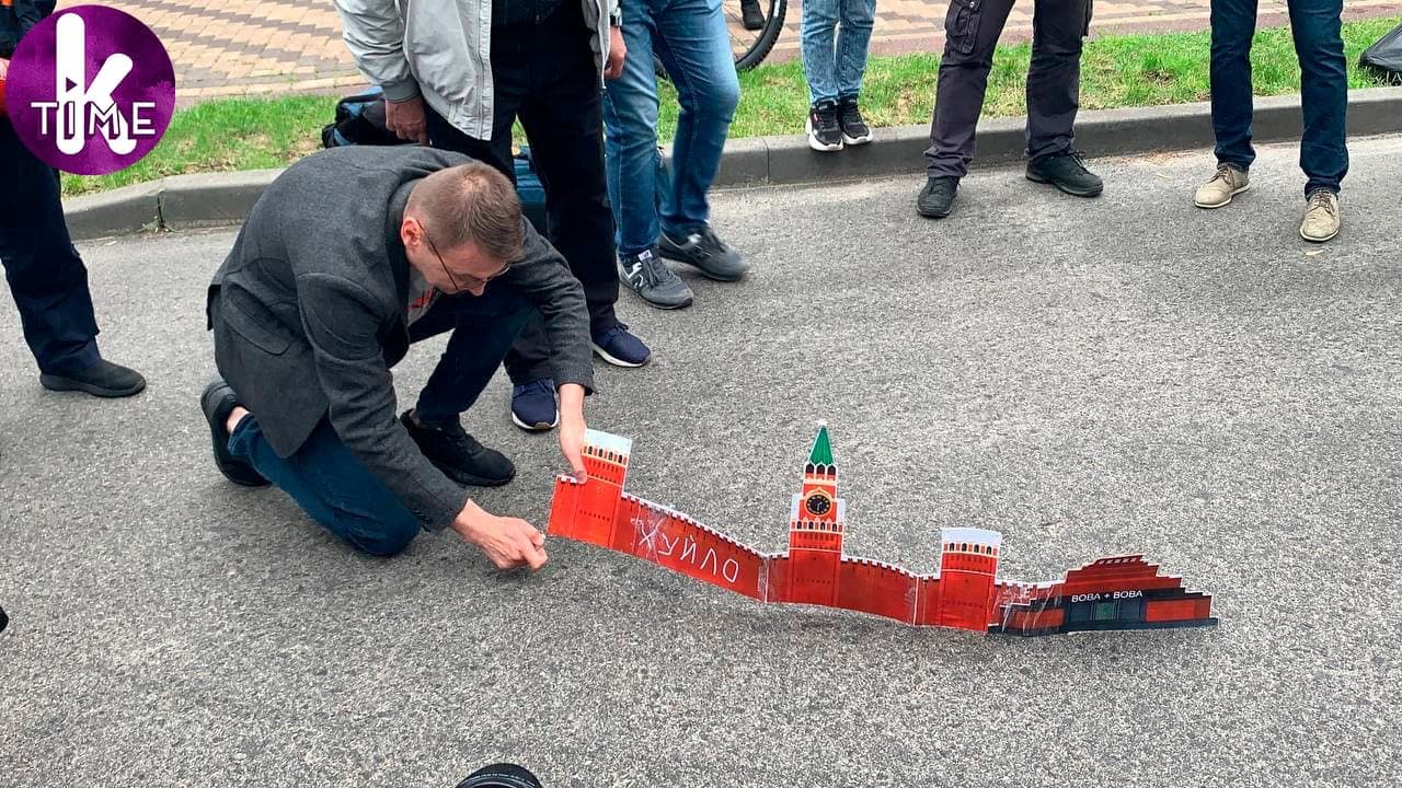 Акт отмщения и поругания Кремля произвели активисты и организации ультраправого толка в ходе акции «Тризна по погибшим на российско-украинской войне» у посольства России в Киеве.