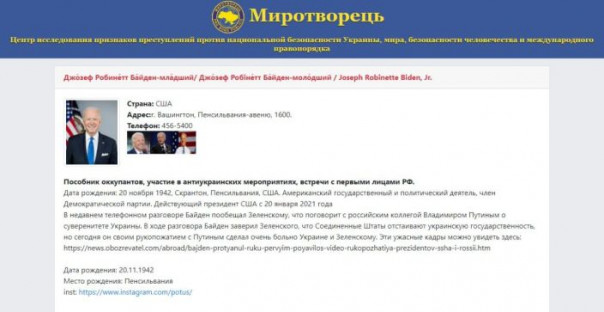 Так выглядит дупаболь... Байдена внесли на "Миротворец"