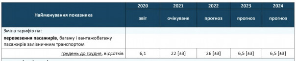 Тарифы на перевозку пассажиров железнодорожным транспортом в 2022 году вырастут на 26%. Такие данные содержит Прогноз экономического и социального развития Украины на 2022-2024 годы, одобренный Кабинетом министров 31 мая 2021 года.