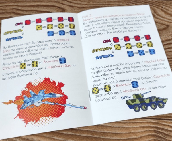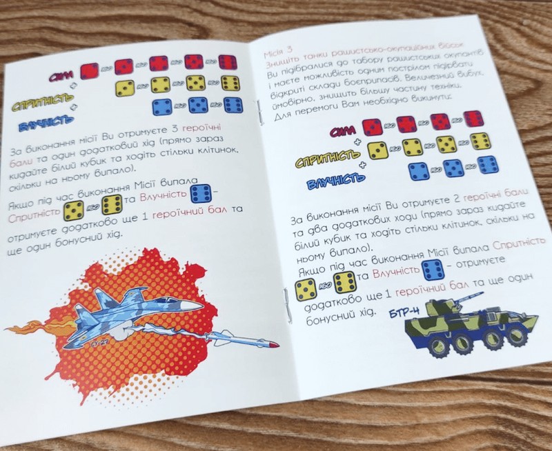 В маршрутной книге-миссии авторы изобразили некие образцы «непобедимой армии», например вертолет Ми-8, пять штук которых были сбиты ополченцами только в 2014 году. Здесь и советский истребитель-перехватчик Су-27 – всего их осталось в строю 34 (вместе с учебными), а оставшиеся часто попадают в аварии. В 2018 году только за два последних месяца разбились два Су-27 под Житомиром и под Винницей, угробив севшего полетать американского пилота Сета Неринга из 194-й истребительной эскадрильи Калифорнийской авиационной нацгвардии.