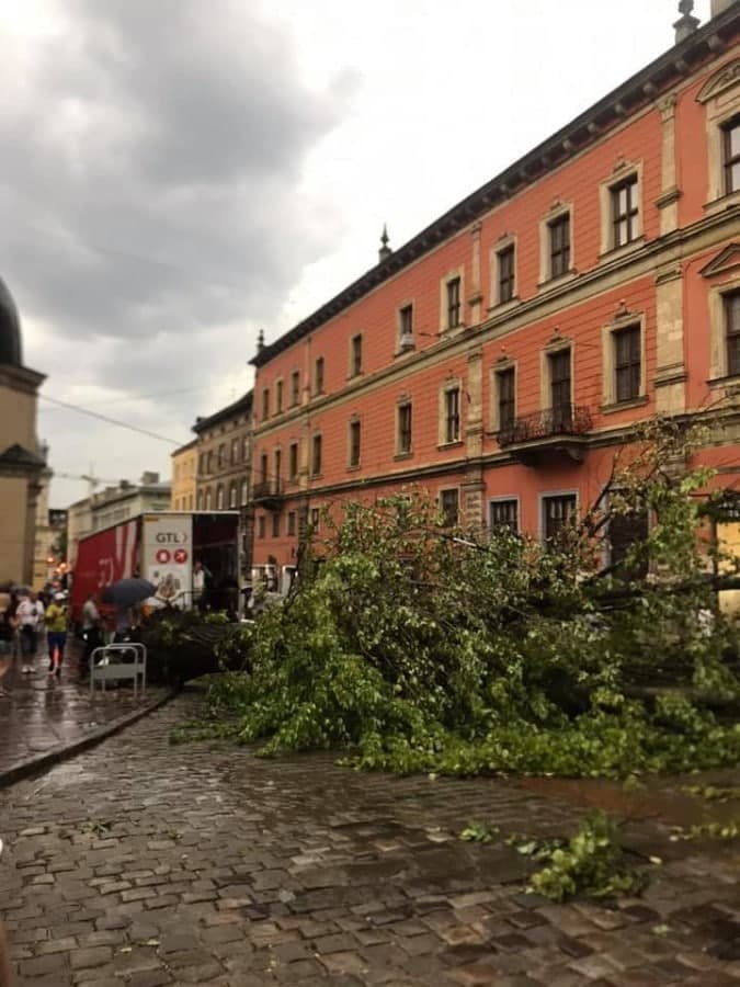 Так, по информации МЧС, днем 25 июня всего за полчаса во Львове выпало 60 процентной месячной нормы дождя. Было подтоплено 11 жилых домов, 23 приусадебных участка и другие здания, ветром частично повреждены 12 крыш, несколько деревьев упали на автомобили. Из-за отключения света в городе остановился электротранспорт. По состоянию на 26 июня продолжаются работы по откачке воды.