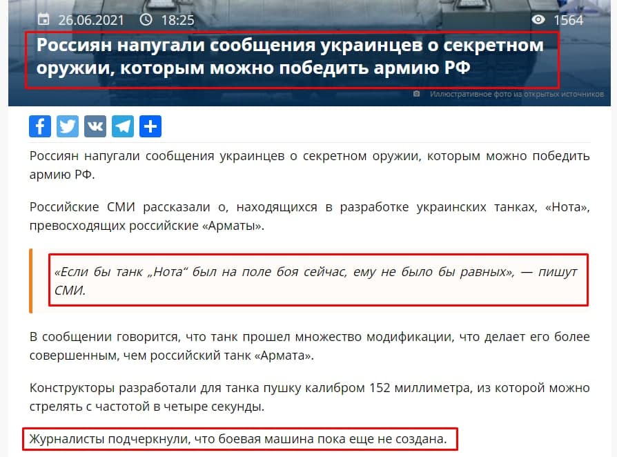 Типичная украинская новость на типичном украинском сайте: Несуществующий танк «Нота» лучше российской «Арматы»
