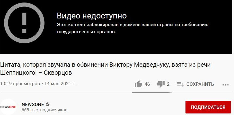 Всё это ваш покорный слуга в дни суда над Медведчуком сообщил зрителям одного из украинских телеканалов. Моё включение в эфир телеканал выложил на Youtube, но не прошло и суток, как по требованию властей ролик был заблокирован.
