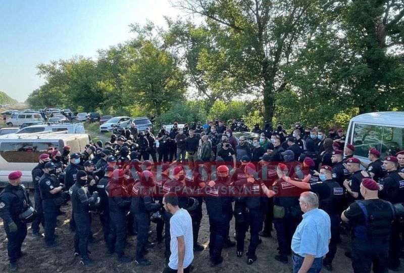При въезде в Марьяновку АТОшники установили музыкальную колонку, чтобы президент их услышал, надеясь задать ему вопросы. Ветераны хотели подойти к президенту, но силовики не дали с ним пообщаться. Завязалась драка, колонки были повалены на землю. Особо активных «патриотов» закрыли в автозаках. Остальных заблокировали на трассе.