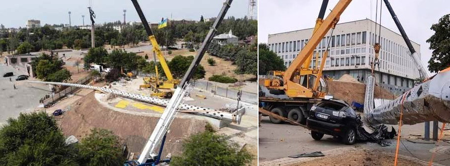 И хоть флагшток не установлен, но уже получил среди херсонцев народное название «хер нэзалэжности». И не подумайте ничего плохого. Это же вам не ельцинский «член КПСС». Хѣръ – это старинное название буквы Х в кириллическом алфавите. И похерить – это, соответственно, перечеркнуть косым крестом в виде буквы Х. А что до эректильной дисфункции флагштока, то мысли об этом – такое же совпадение, как и его падение на автомобиль ответственного за эрекцию.