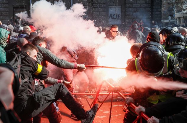 Местные СМИ отмечали, что среди радикалов были молодые люди с нашивками «Национальных дружин» и «Правого сектора»* на одежде.