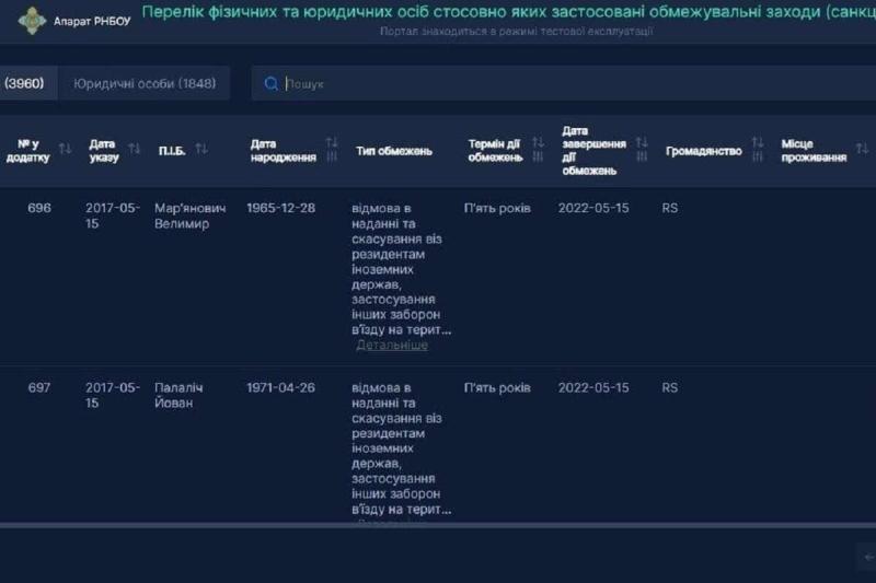 Совет национальной безопасности и обороны Украины (СНБО) запустил сайт с украинскими санкционными списками. Ресурс sanctions-t.rnbo.gov.ua пока работает в тестовом режиме. На нем будет размещено четыре тысячи записей с физическими лицами и почти две тысячи — с юридическими, против которых введены санкции на Украине.