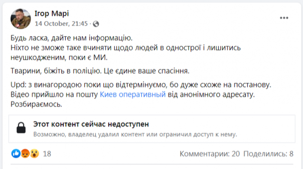 После этого на странице Киевского городского Совета ветеранов АТО в Facebook появилась запись, в которой указывалось, что за имена ромов и их адреса информаторы могут получить вознаграждение в размере 100 тысяч гривен. Однако вскоре публикация была удалена. Глава этого Совета Игорь Мари на своей странице в Facebook опубликовал аналогичную просьбу.