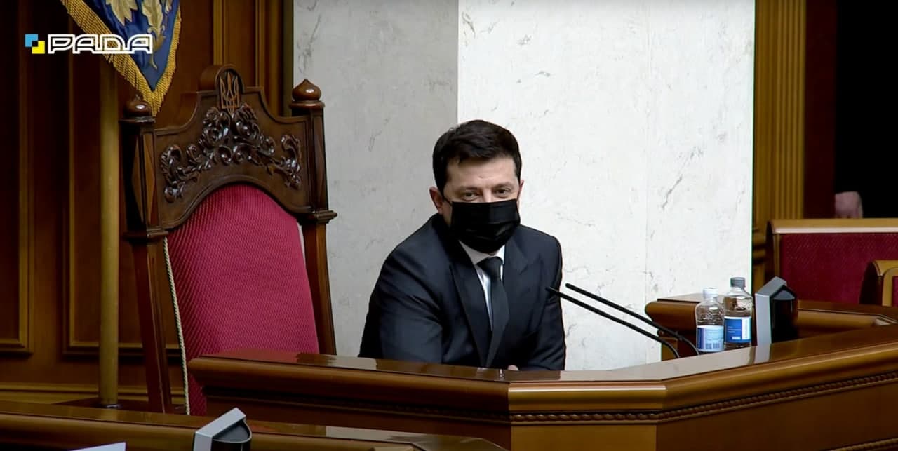 После этого спикер Верховной Рады Руслан Стефанчук попросил выключить микрофон. Лерос показал Зеленскому средний палец и покинул трибуну.