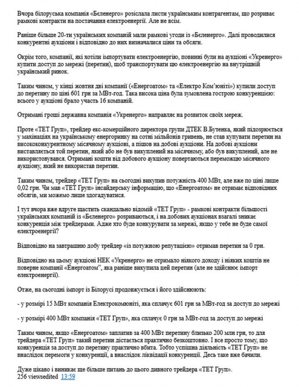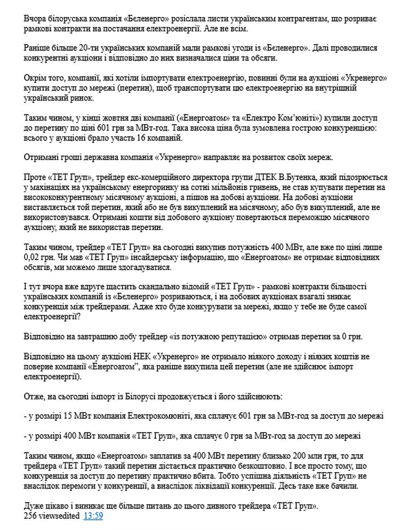 — в размере 400 МВт компания «ТЕТ Групп», которая платит 0 грн за МВт-ч за доступ к сети.