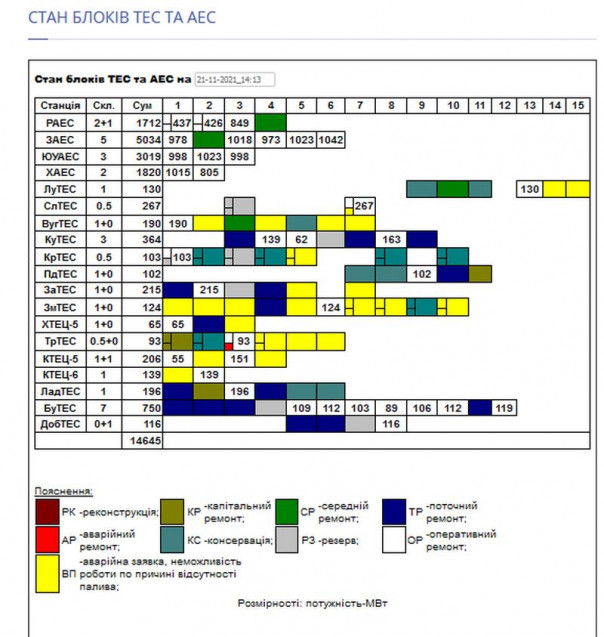 По состоянию на конец прошлой недели в стране, по данным диспетчера «Укрэнерго», отключились 90% мощностей государственных ТЭС, 60% мощностей простаивают из-за нехватки угля.