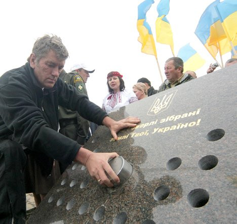 Но Говерла всё же слегка преобразилась. При президенте Ющенко на вершине горы таки были установлены некоторые национальные символы. Затеявшим святое дело по переустройству ландшафта, видимо представлялось, что тризуб, поднятый на высоту 2061 метр, будет виден со всех уголков нашей, теперь уже объятной, родины. Особое место занял монумент с капсулами, в которых будут храниться образцы почв со всей территории нынешней Украины.