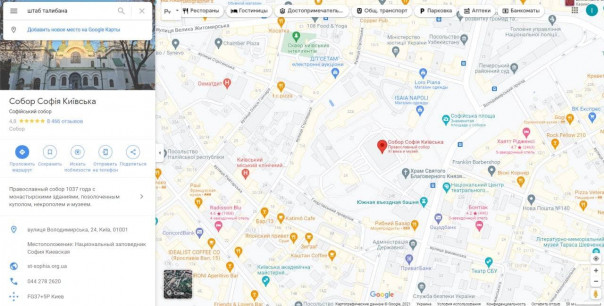 Примечательно, если открыть гугл-карты и ввести "штаб талибана" метка устанавливается именно на Софии Киевской.