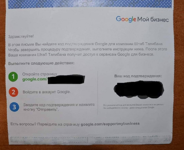 В комментариях он опубликовал и текст письма. Там снова повторяется "штаб Талибана" и предлагается ввести некий код на странице (этого Кириленко делать не стал)