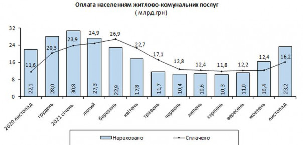 Долг за квартирную плату по состоянию на 1 декабря 2021 года увеличился на 20,9 млн гривен до 5 585,4 млн гривен.