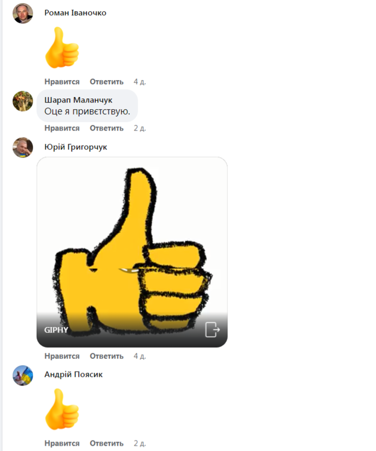 Предложение публике пришлось по душе. Пост Романюка обрел более 2200 расшаров и вызвал ажиотаж в комментариях. Многие украинцы приняли публиковать знаки одобрения и сообщать «Вот это я приветствую!».