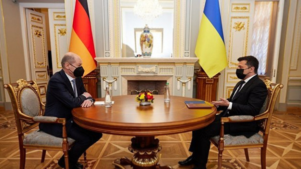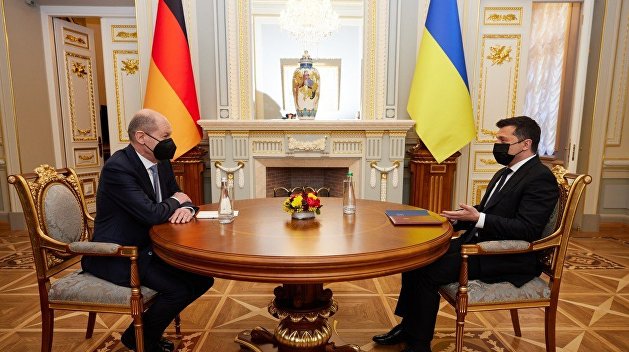 На встрече с президентом Украины Владимиром Зеленским канцлер ФРГ Олаф Шольц заявил о возможности поставки оружия Киеву и необоснованном стягивании российских военных к границе, хотя раньше старался занимать максимально нейтральную позицию по вопросам, связанным с РФ и Украиной