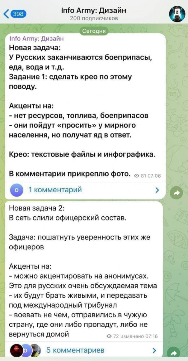 Стоит отметить, что на фоне всего этого существенная активизация идет и в информационном поле. украинские фермы по созданию фейков получают задания по распространению дезинформации о пораженческих настроения в российских войсках и несметных потерях якобы попавших в засаду военнослужащих ВДВ, огромном количестве уничтоженной техники.