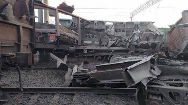 Отметим, что в украинских пабликах уже появились фото, на которых показано, что российские ракеты если куда-то и попали, но точно не в эшелон с техникой. На опубликованных снимках изображены какие-то перевернутые полувагоны, что-то разрушенное.