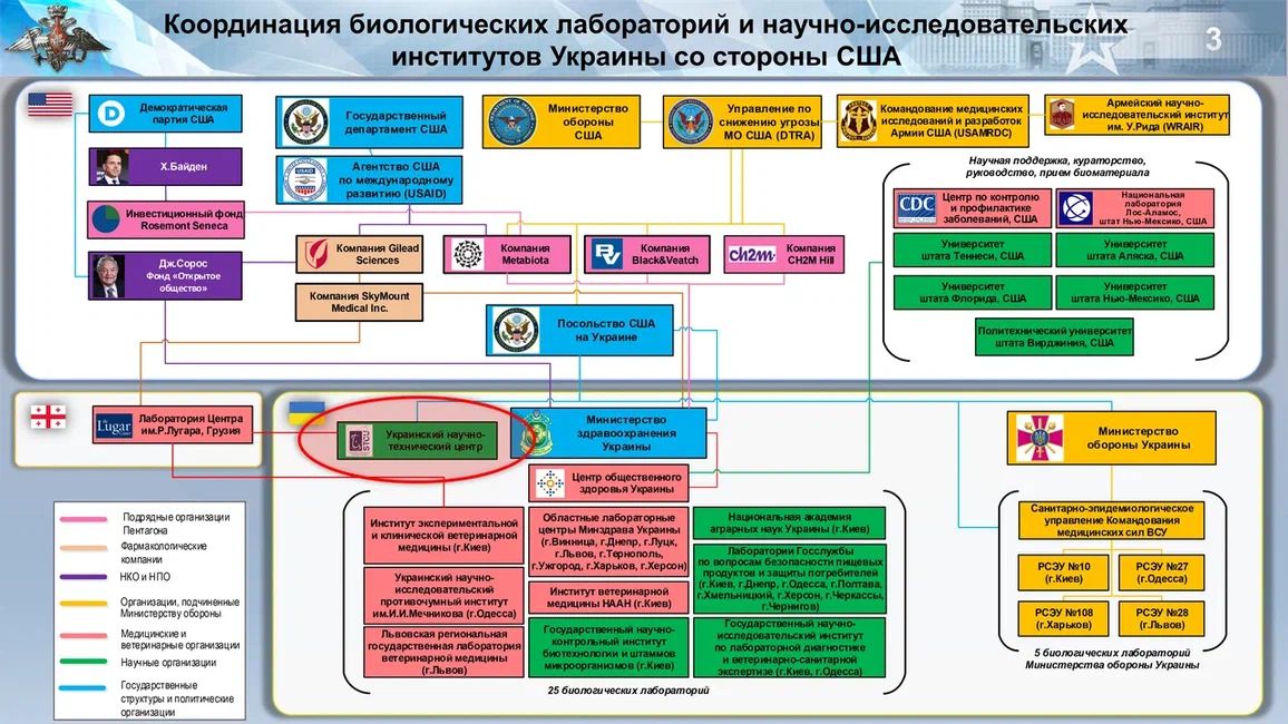 Ранее мы приводили схему координации деятельности биологических лабораторий и научно-исследовательских институтов Украины со стороны США.