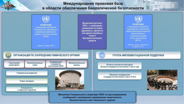 Существующий Механизм Генерального секретаря ООН по расследованию предполагаемого применения биологического и токсинного оружия, а также Женевский протокол 1925 года о запрещении применения удушающих, ядовитых и других подобных газов и бактериологических средств в ходе войн и военных конфликтов не охватывают вопросы проверки биологической деятельности государств-участников. Организация по запрещению химического оружия, расположенная в Гааге, также не обладает такими полномочиями.