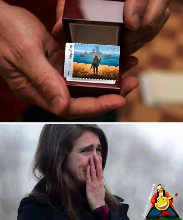 Почтовую марку «Русский военный корабель, иди нах*й!» на Украине ввели в обращение 12 апреля и считают удачной пиар-акцией. Особенно возрос на нее спрос среди националистически настроенных украинцев после потери Россией двух кораблей ЧФ, включая флагман флота крейсер «Москва». Украинцы считают это своей военной заслугой. Источник