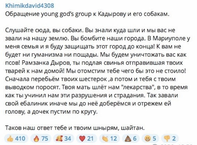 После попадания в плен азовца попросили снять одежду и показать свои татуировки. На его теле нашлось место и для цитат Леонида из фильма «300 спартанцев», и для головы дьявола-бафомета, и для жизнеутверждающей фразы — «всех убить».