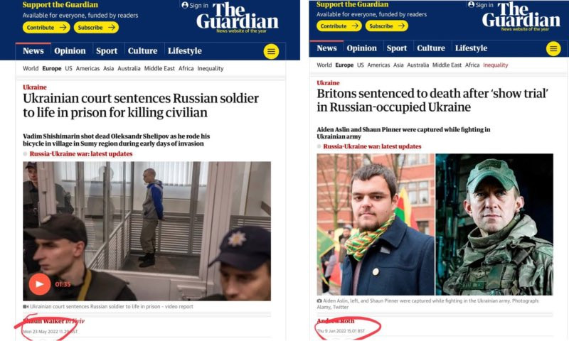 Британские СМИ лицемерно хвалят нацистов за суд над российским солдатом и критикуют суд над наемниками.