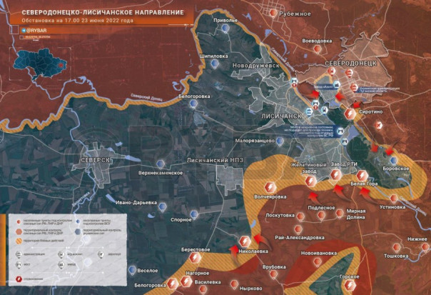 Обстановка на Северодонецко-Лисичанском направлении по состоянию на 17.00 23 июня 2022 года (Рыбарь)