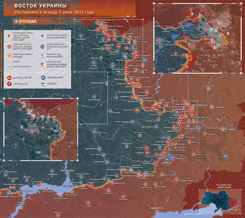 Наступление на Донбасс: обстановка на востоке Украины к исходу 1 июля 2022 года (Рыбарь)