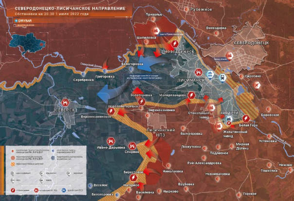 Обстановка на Северодонецко-Лисичанском направлении по состоянию на 20.30 1 июля 2022 года (Рыбарь)