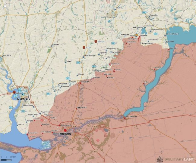 На николаевском операционном направлении конфигурация линии боевого соприкосновения остаётся практически неизменной. Подразделения 137-го отдельного батальона, 36-й отдельной бригады морской пехоты ВМСУ, а также 28-й отдельной механизированной и 59-й мотопехотной бригад ВСУ продолжают укреплять и расширять фортификационную инфраструктуру в населённых пунктах Посад-Покровское, Мирное, Новопетровка, Любино и Широкое в преддверии неминуемого начала наступательных действий регулярных подразделений Российской армии.