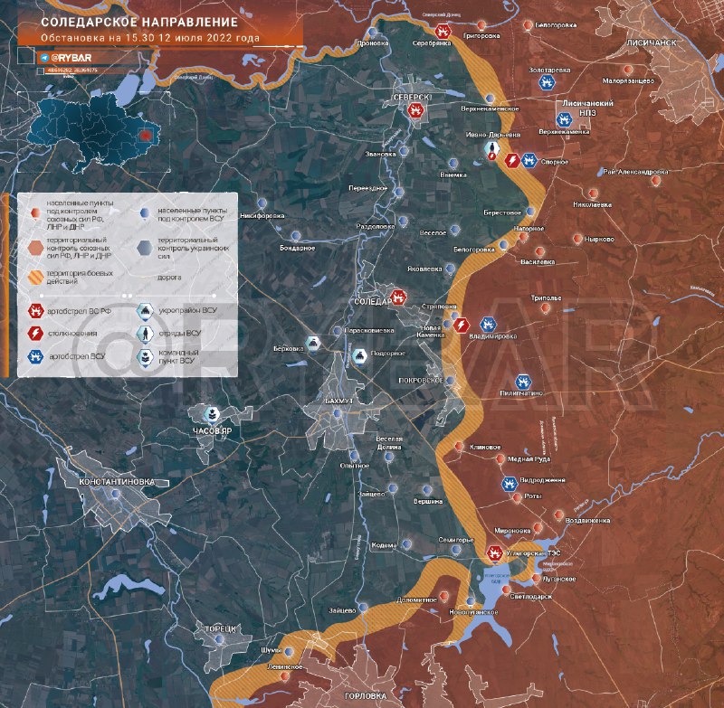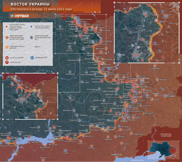 Карта военных действий и ситуация на фронтах вечером 12 июля 2022 года