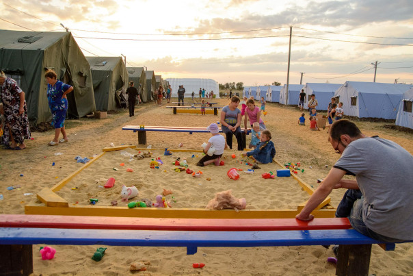 Бомжевать нам не дали. После незабываемой поездки по дороге смерти, которая за три дня до этого обстреливалась снайперами, после бесконечной очереди навьюченных автомобилей на украинско-русской границе, нас приютил полевой лагерь беженцев. Там были и туалет, и душ, и медобслуживание, и трансфер в другие города России. На помойках харчеваться нам тоже не позволили – обеспечили приличной кормёжкой. Правда, поселились мы на территории лагеря в своей палатке – но это по нашей личной инициативе: людей было очень много, и мы решили не занимать места, на которые могут заселиться семьи с маленькими детьми.