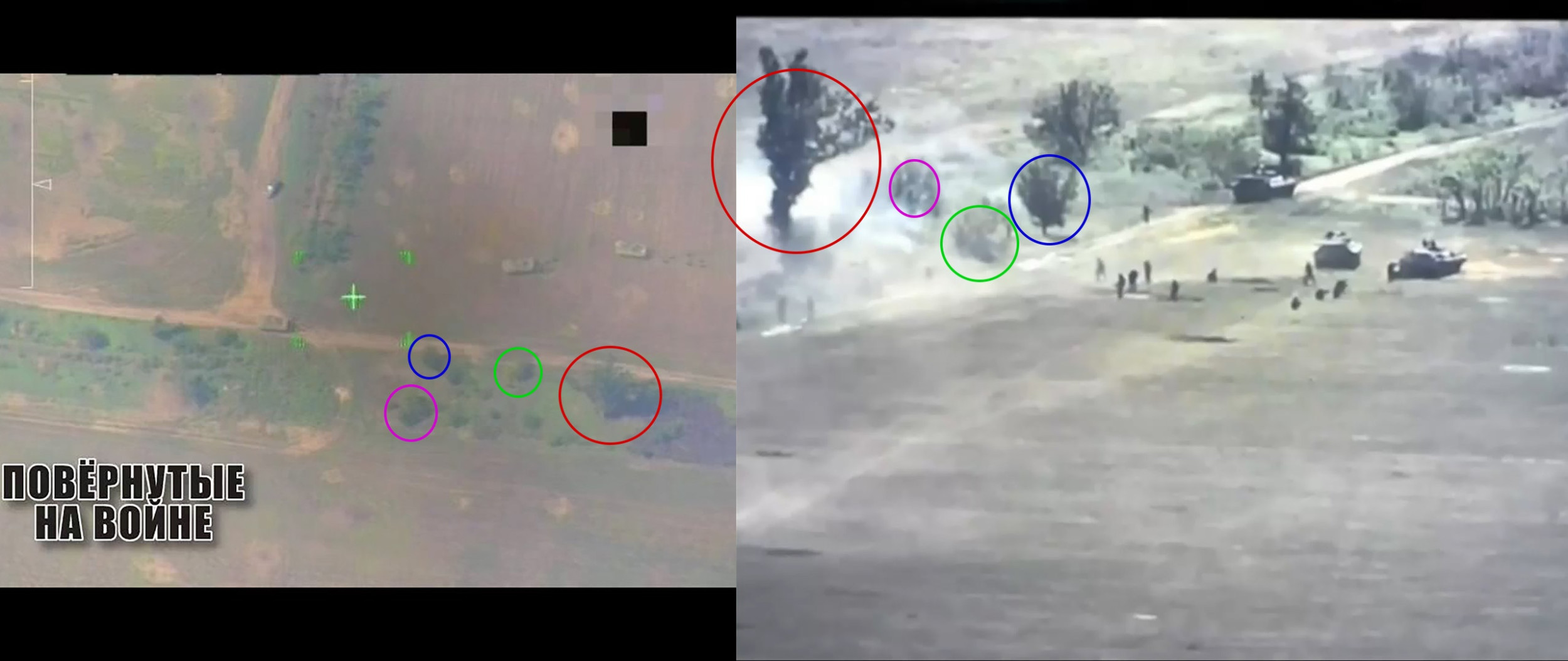 Позже пользователь ресурса LostArmour Ult сопоставил местность на обоих видео. Как выяснилось, оба они сняты в одном месте и в одно время. Позже была снята геолокация. Украинский беспилотник, расположенный за спиной наступающих, использовался для управления атакующим подразделением.