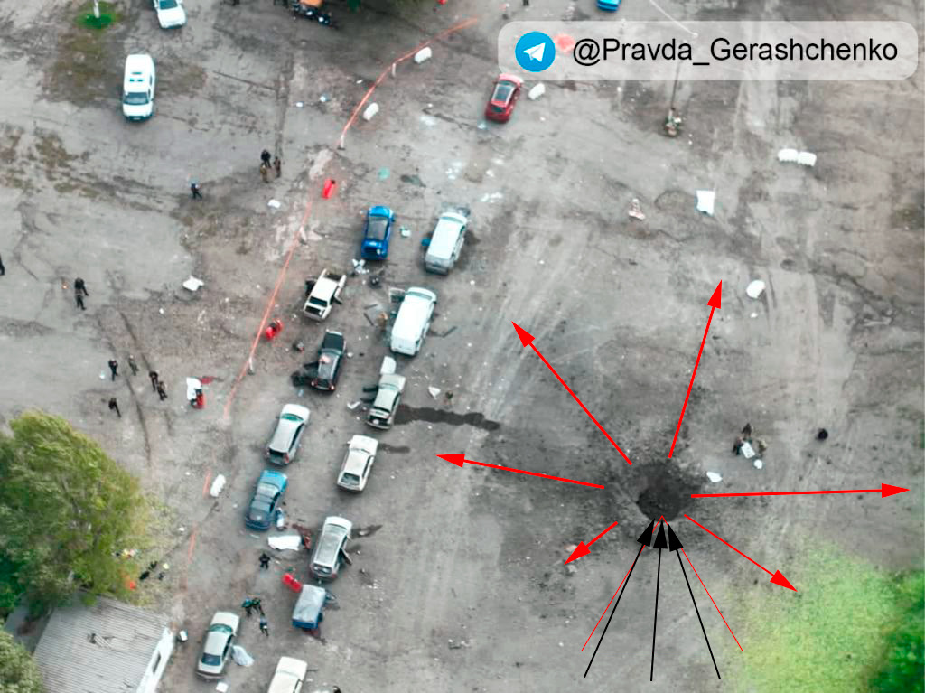 Киевские оккупанты сразу во всём обвинили российские войска и мы честно ждали доказательств. Если это была ракета, то путчисты должны были трясти её обломками. Но не было ракеты. Фотографии с места происшествия показывали взрыв характерный для артиллерийского снаряда, но не ракеты. Сначала появилась фотография воронки от взрыва, а потом известный деятель путчистов Антон Геращенко опубликовал фотографию места происшествия сверху, с квадрокоптера. Сразу стало всё понятно.